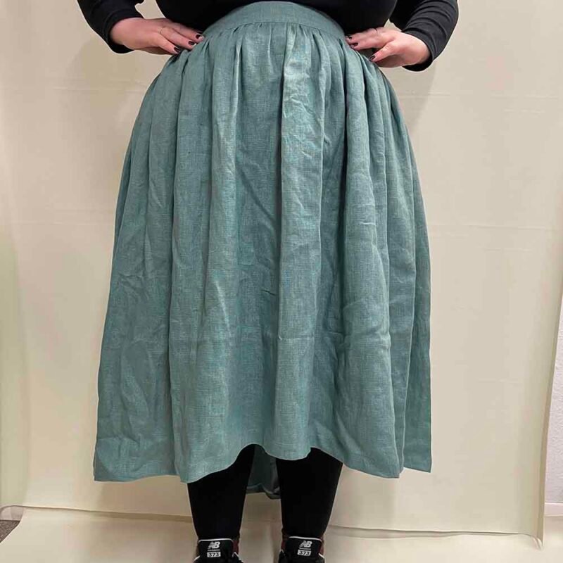 A gentle flared skirt which follows the shape of the capital A which can be part of a dress or as a skirt.