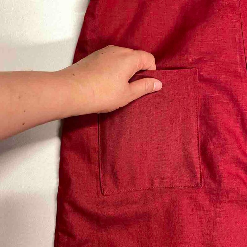 Your waist is the narrowest point in your torso. It’s helpful to pull your top to be tight against the body so you can locate the narrowest point. Pass the tape measure around your back to meet at the front level with this narrowest point.
