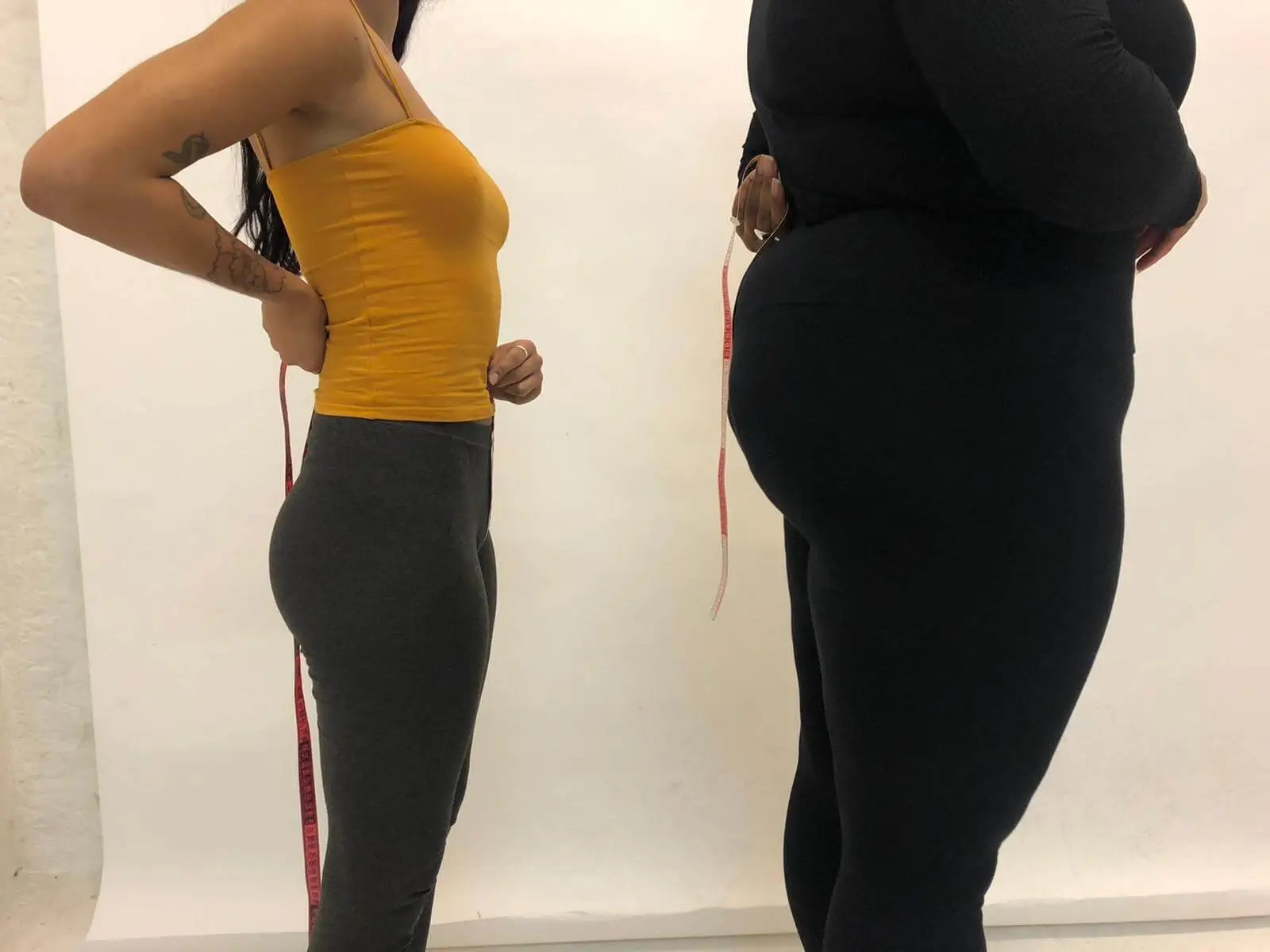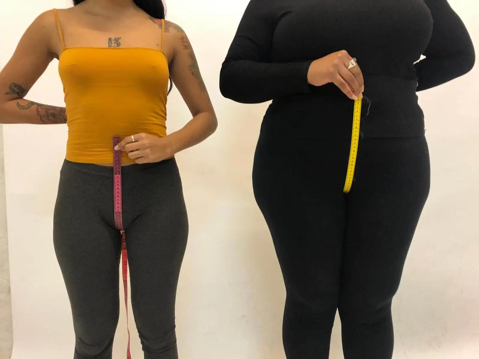 We start the leg length measurement from the waist as most of our designs are high-waisted. Locate your waistline which is the narrowest part of your torso: it’s helpful to pull your top to be tight against the body so you can locate the narrowest point.