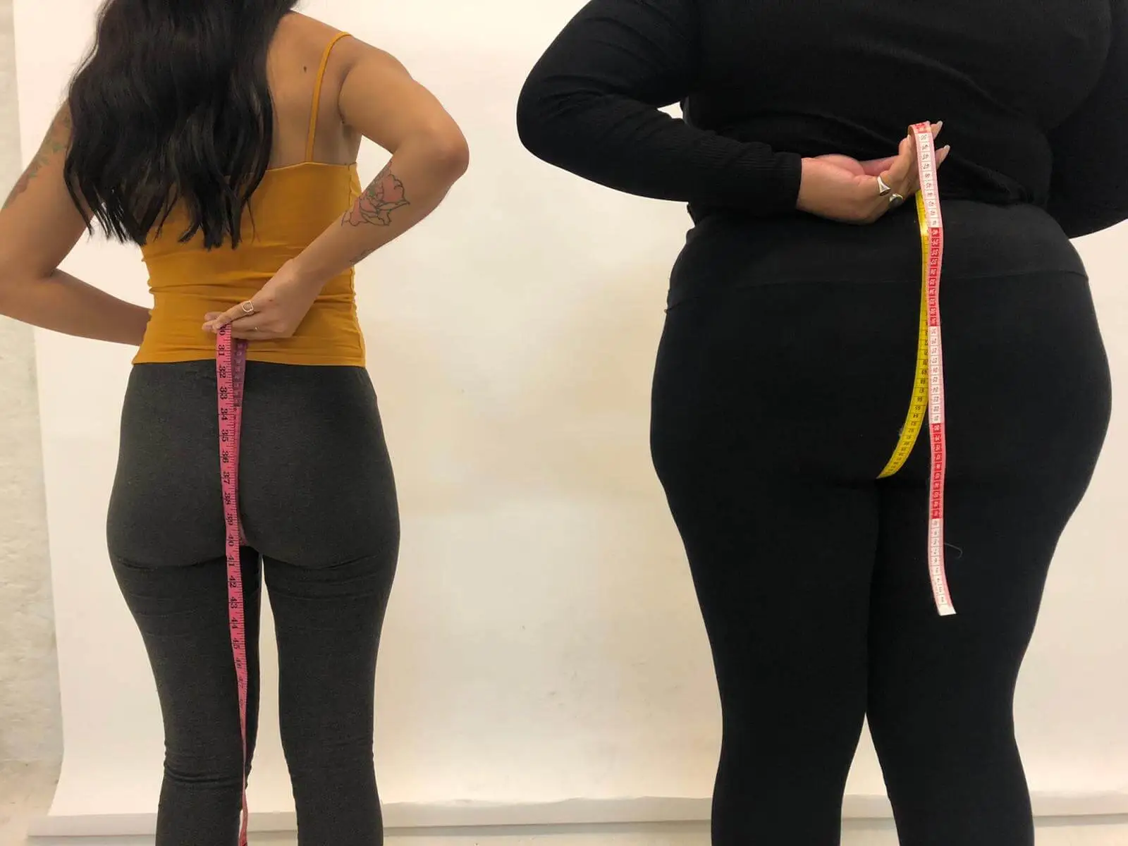 Place the tape measure at your waistline and pass the tape measure between your legs.