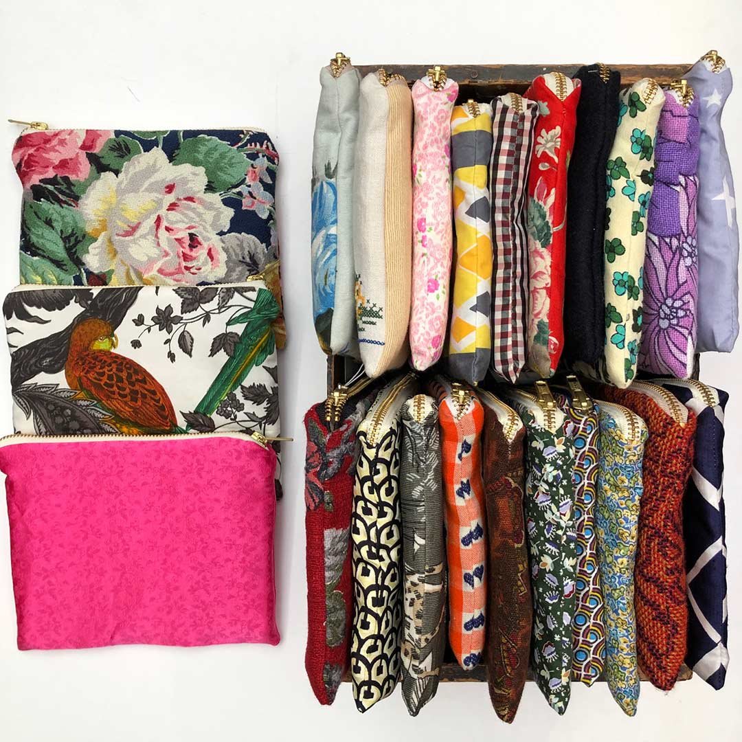 Here at Emperor’s HQ, we have a zero fabric waste policy meaning that the fabric offcuts that we produce we then reuse to create accessories such as our pouches, purses, handbags and glasses cases. We encourage our customers to purchase these items and to get crafty by collecting fabric scraps from the cutting process to use in our wreath making kits + fabric scrap bundles. We rely on our customers to purchase these items to allow for more storage space in our studio for the build-up of these fabrics.