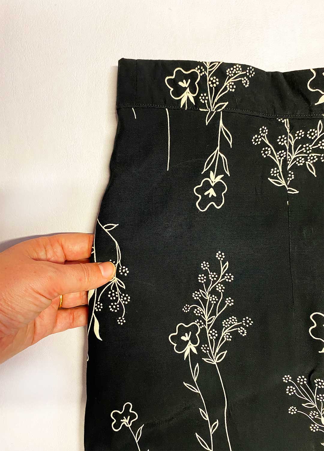 Black floral viscose A-line skirt- ref 171 – Resale item – Approx UK 14-16
