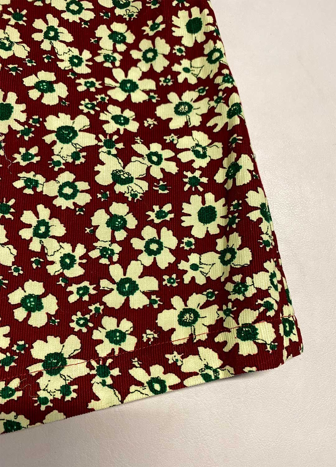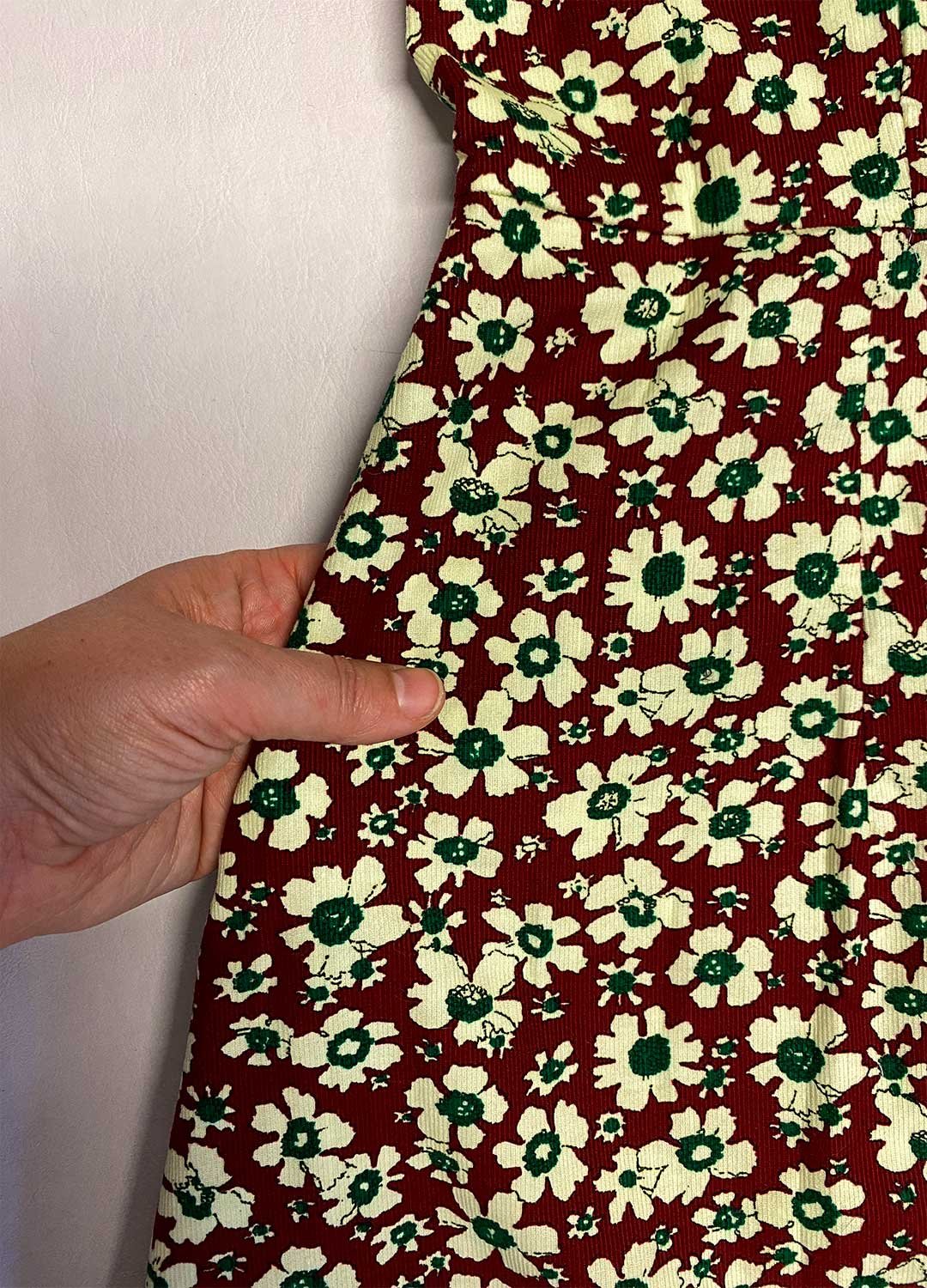 Burgundy floral needlecord A-line strap dress – ref 193 – Resale item – UK 12-14