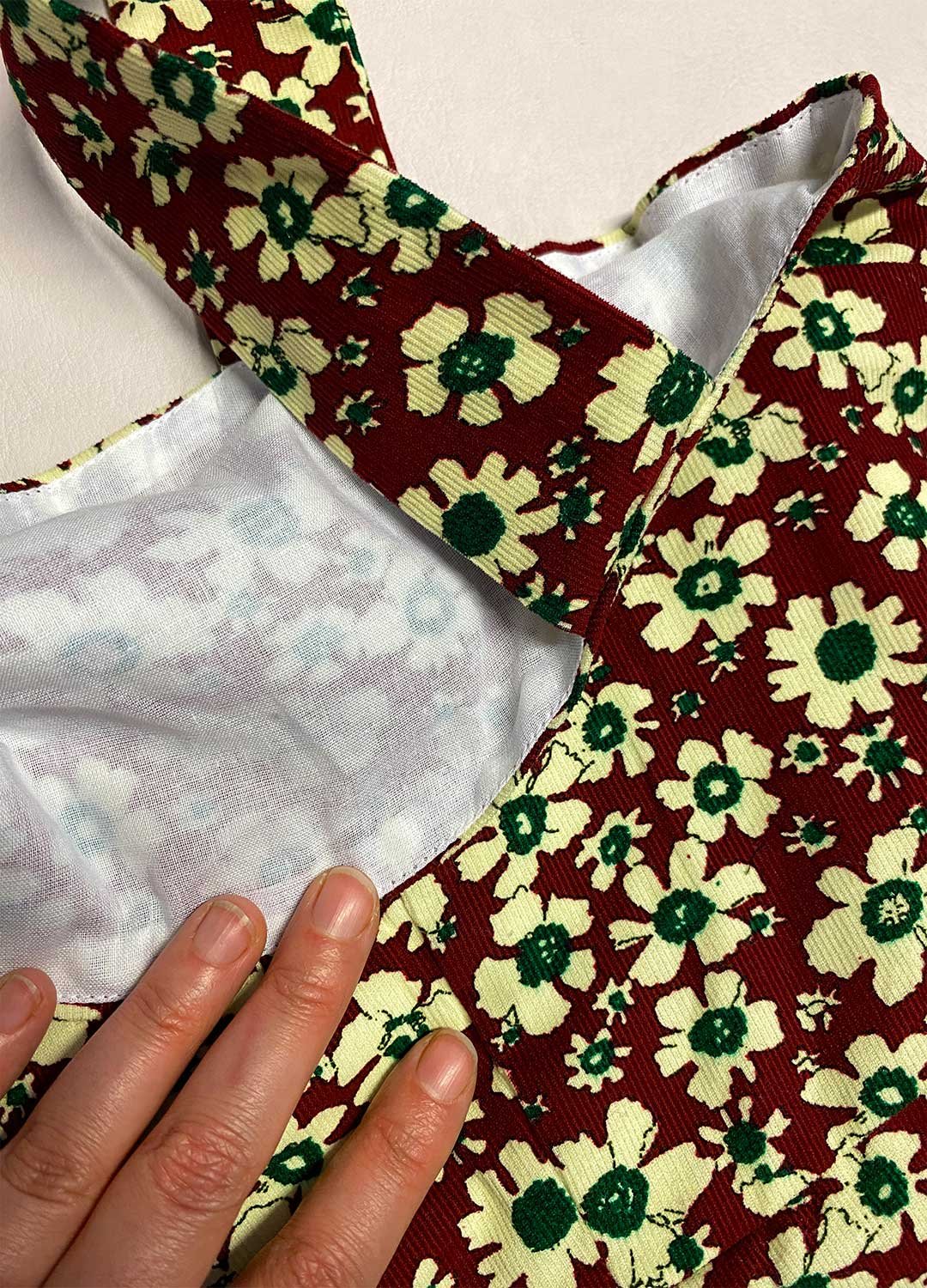 Features: bandeau bodice, wide shoulder straps, fine cotton bodice lining, side seam pockets + A-line skirt