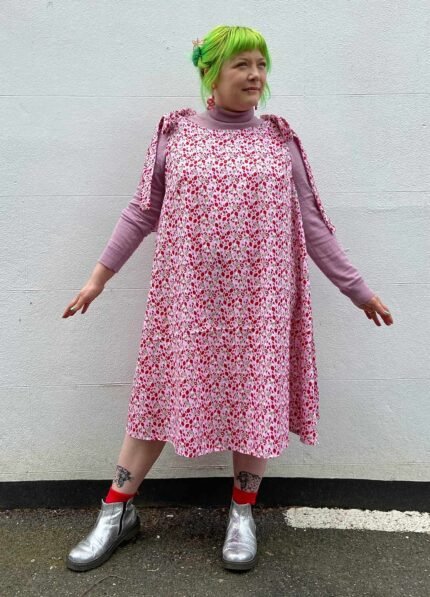 Like all our playsuits & dungarees, this dungaree dress comes with a side popper, zip fastening, metal brace clips and adjustable shoulder straps for your comfort – or choose your own fastenings.