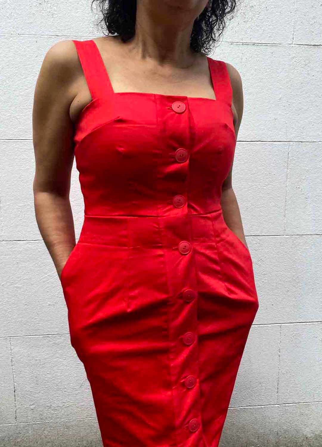 Feel good fashion! This pencil strap dress will be created by our small team in our Brighton & Hove studio for a living wage. Every piece we make is totally unique and will not be reproduced.