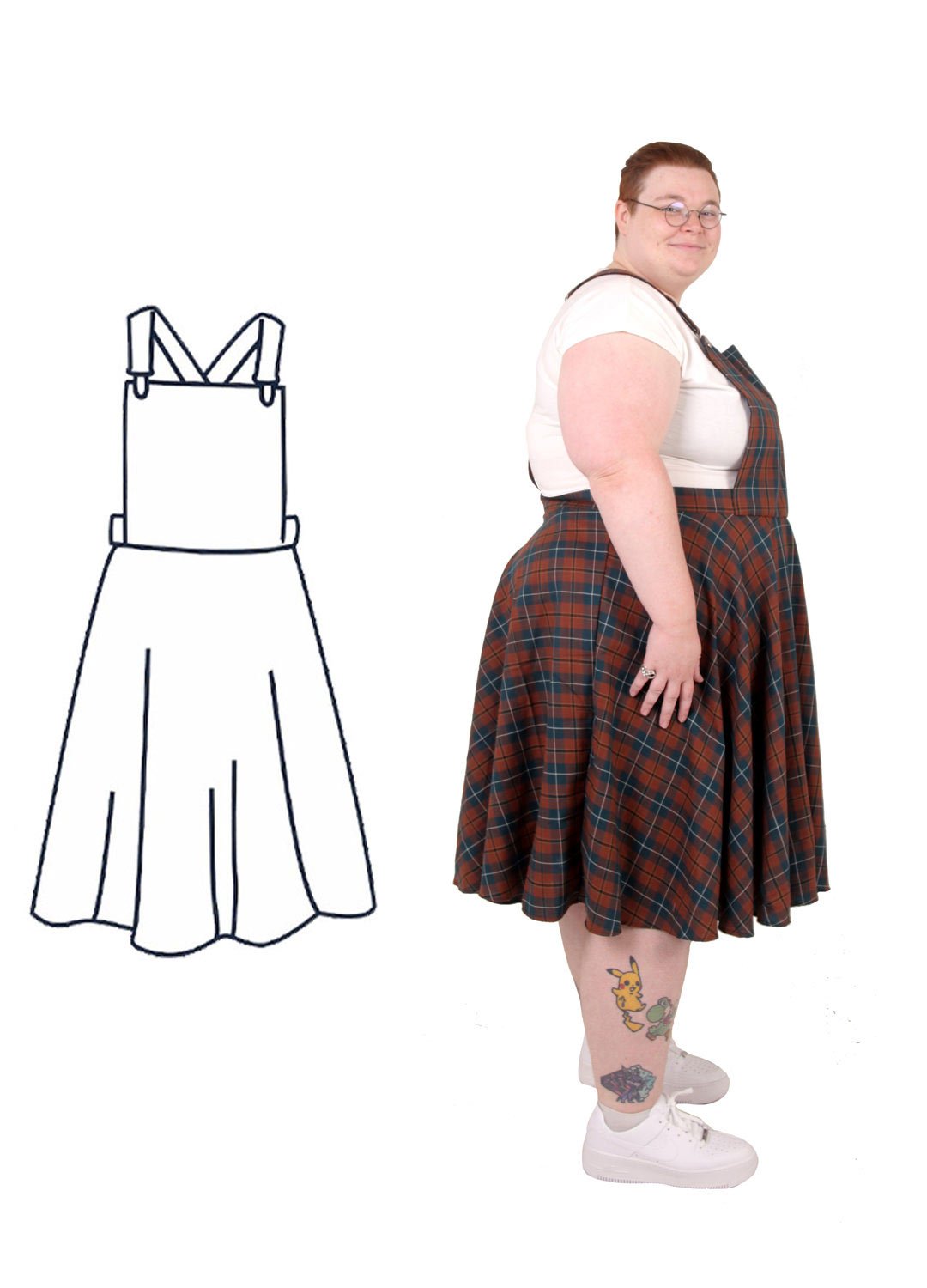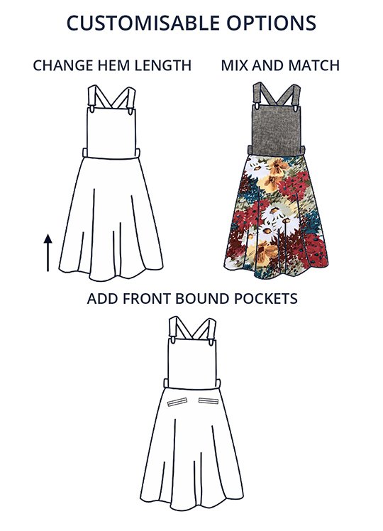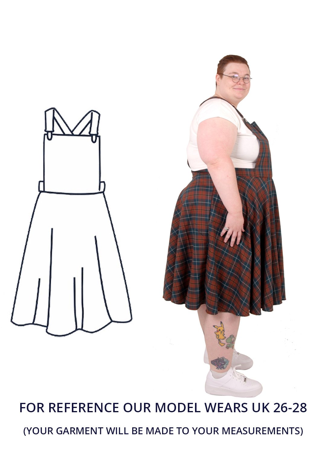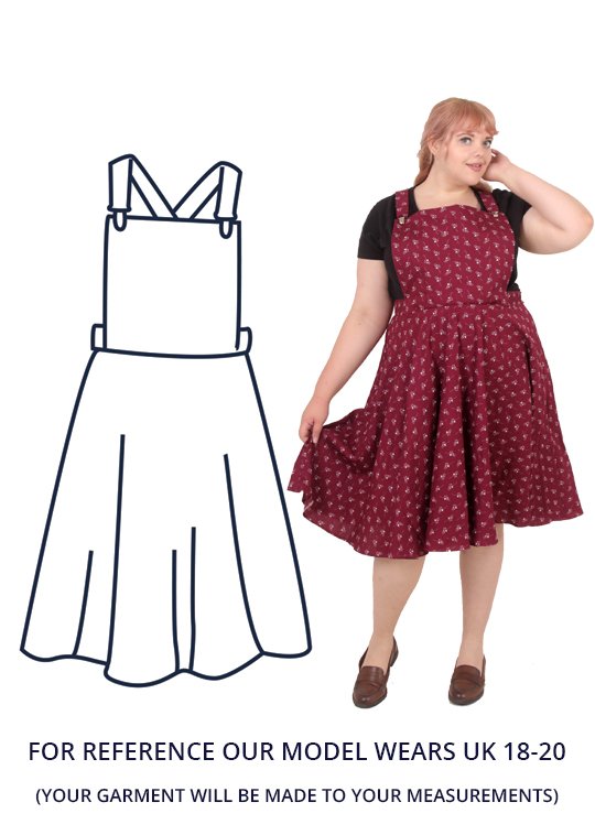Our pinafore dress is a fun take on dungarees for those who don’t like to wear trousers.