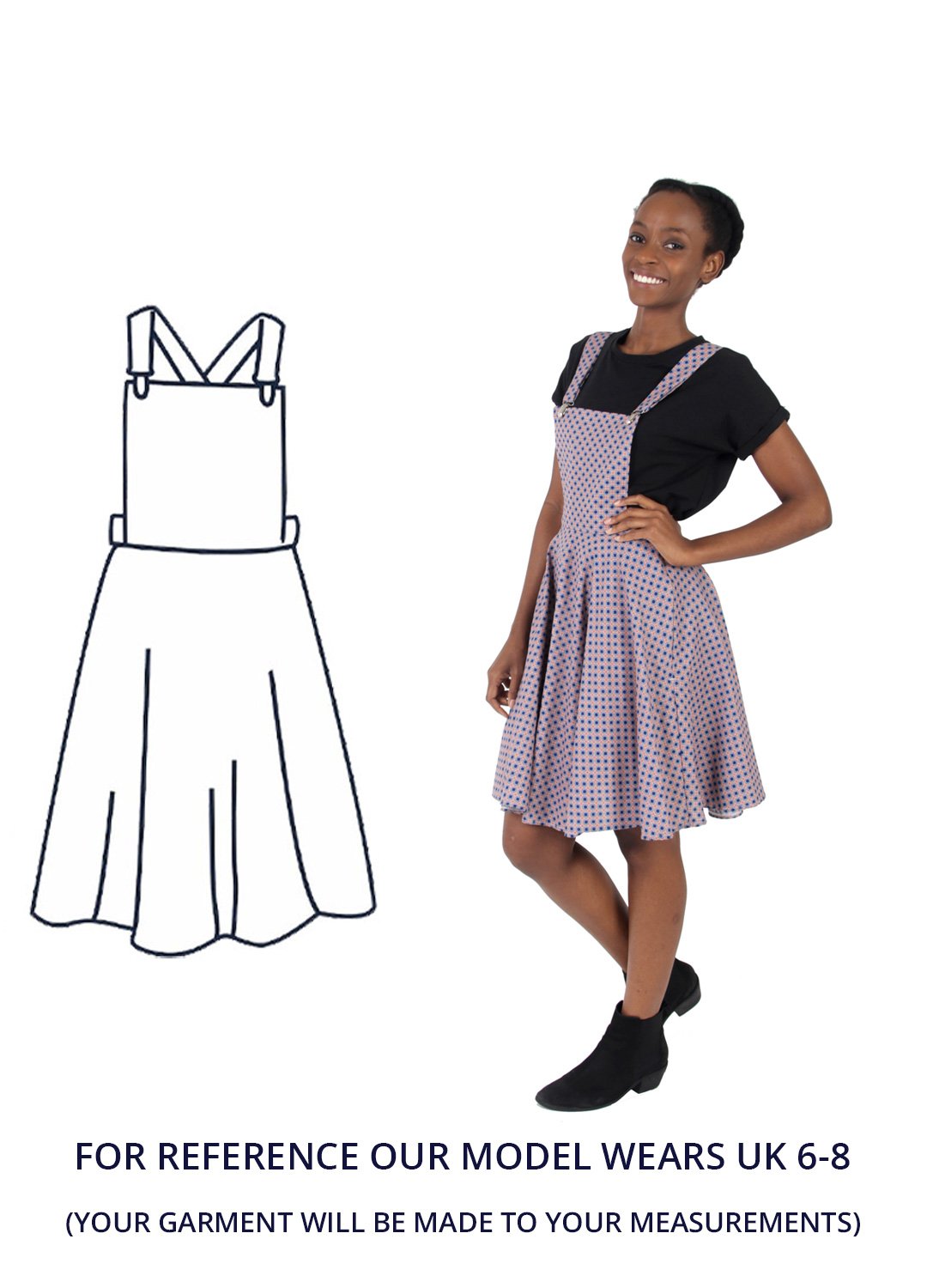 Feel good fashion! This pinafore dress will be created by our small team in our Brighton studio for a living wage. Every piece we make is totally unique and will not be reproduced.