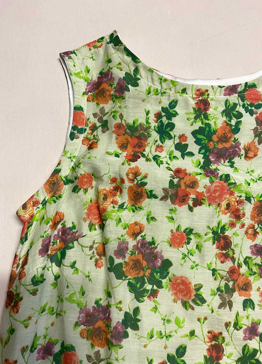 Muted floral print lightweight cotton with pale green fine cotton lining