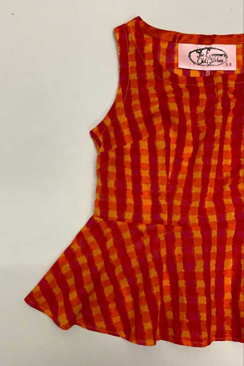 Pink and Orange Check Peplum Crop top – Ref 66 – Resale item – UK 6-8