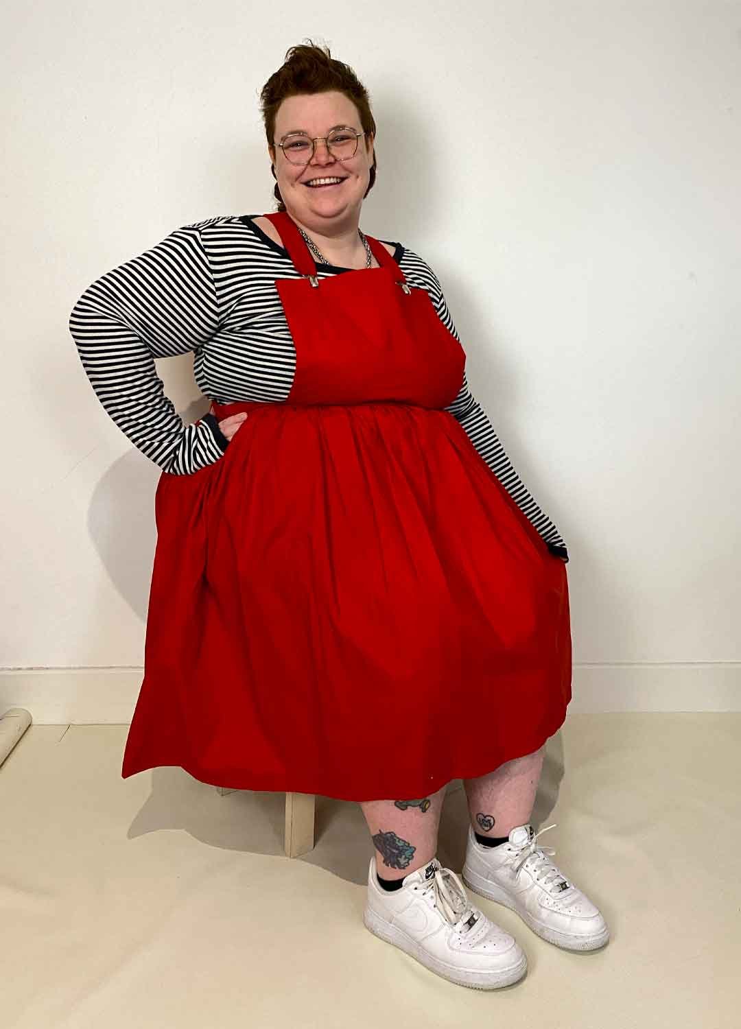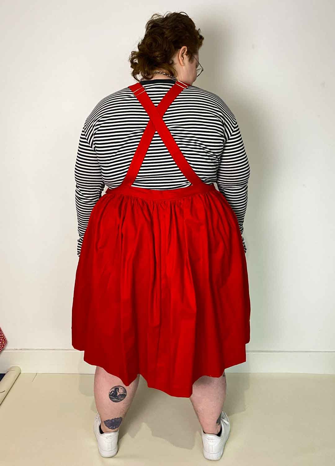 Red gathered pinafore – ref 161 – Resale item – Approx UK 22-24