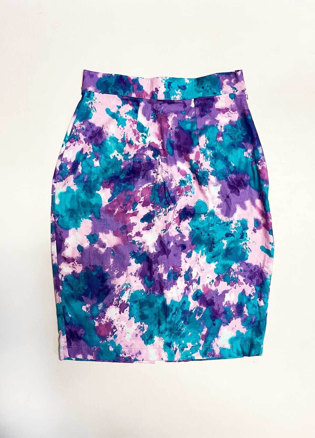 Teal + purple tie dye cotton pencil skirt- ref 173 – Resale item – Approx UK 10-12